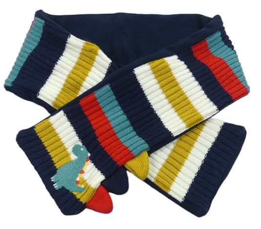 Tmavomodro-barevná pruhovaná fleecová/pletená šála s dinem