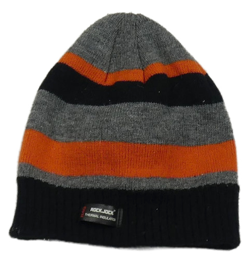 Šedo-oranžovo-černá pruhovaná pletená podšitá čepice