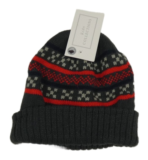 Nové - Tmavošedo-červeno-tmavomodrá vzorovaná čepice