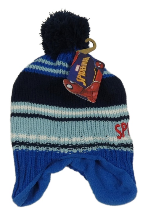 Nové - tmavomodro-modrá pruhovaná podšitá čepice se Spidermanem a bambulí MARVEL