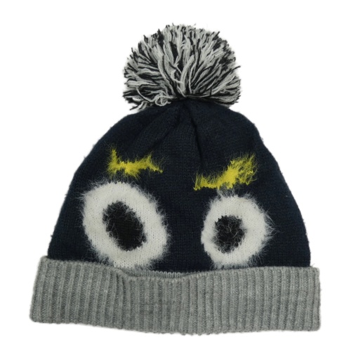 Tmavomodro-šedá čepice s očima a bambulí F&F
