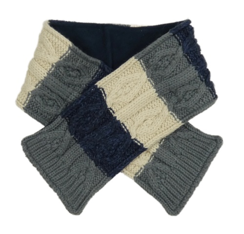 Tmavomodro-šedo-bílá pruhovaná pletená podšitá šála Next