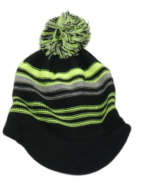 Černo-zelená pletená čepice s kšiltem a bambulí