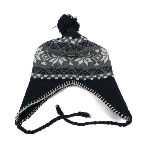 Šedo-tmavomodrá pletená vzorovaná čepice s bambulí
