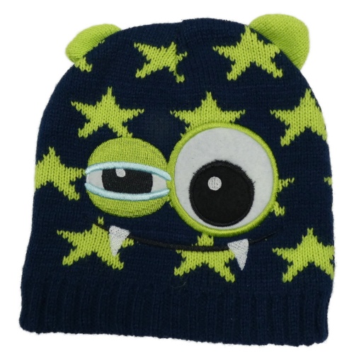 Tmavopetrolejovo-limetková pletená čepice s hvězdičkami - příšerkami