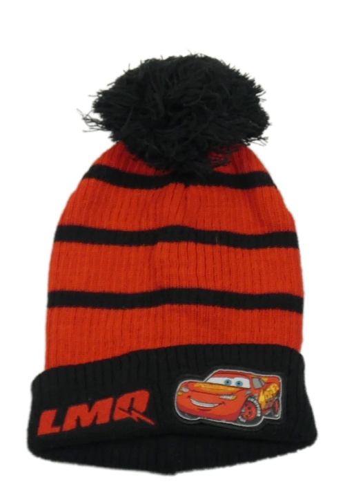 Černo-červená pruhovaná čepice s bambulí - Auta