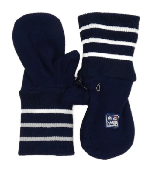 Tmavomodré fleecovo/pletené palcové rukavice s nášivkou a pruhy Jojo Maman Bébé