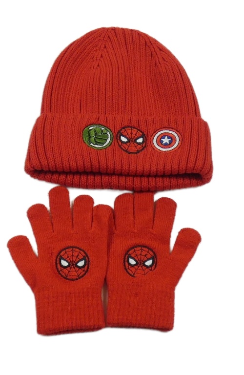 2Set - Červená žebrovaná čepice se znaky Avengers + prstové rukavice se Spider-manem H&M