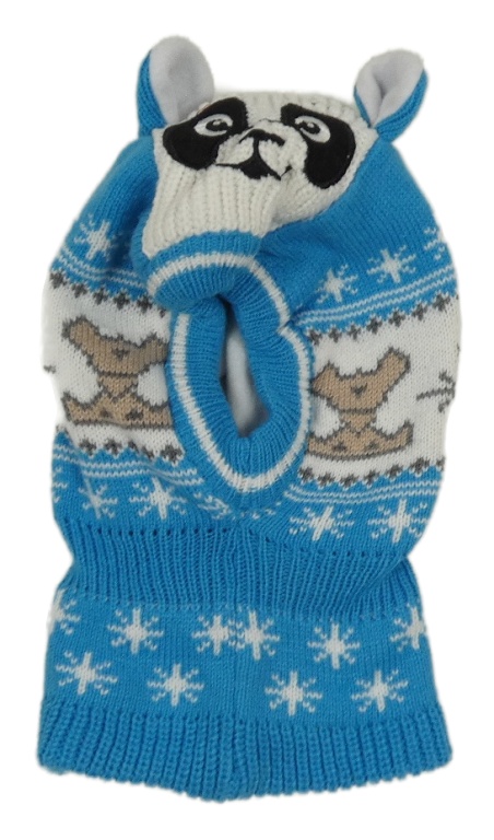 Azurovo-bílá pletená kukla s medvídky