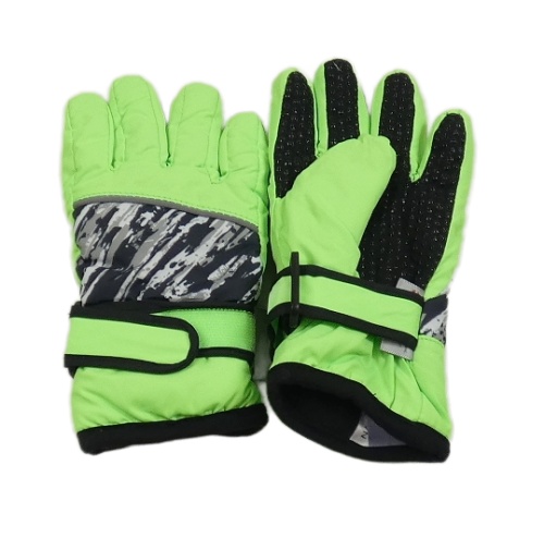 Neonově zeleno-vzorované šusťákové zimní prstové rukavice Dopodopo