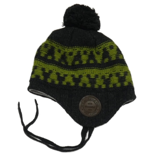 Antracitovo-zelená čepice se vzorem, nášivkou a bambulí