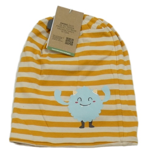Nové - Hořčicovo-béžová pruhovaná beanie čepice s příšerkou TCM