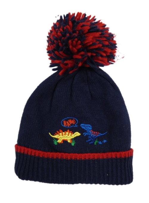 Tmavomodro-červená pletená čepice s dinosaury Matalan
