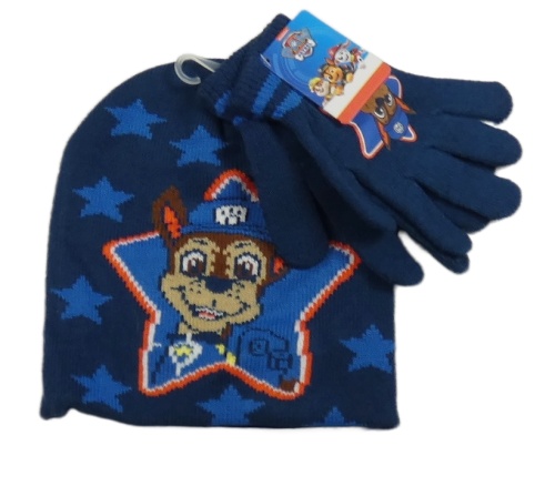 Nové - 2 set - tmavomodré pletené prstové rukavice + čepice s Tlapkovou patrolou Nickelodeon