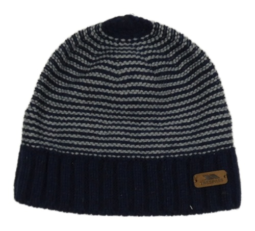 Tmavomodro-šedá pruhovaná pletená čepice s logem Trespass