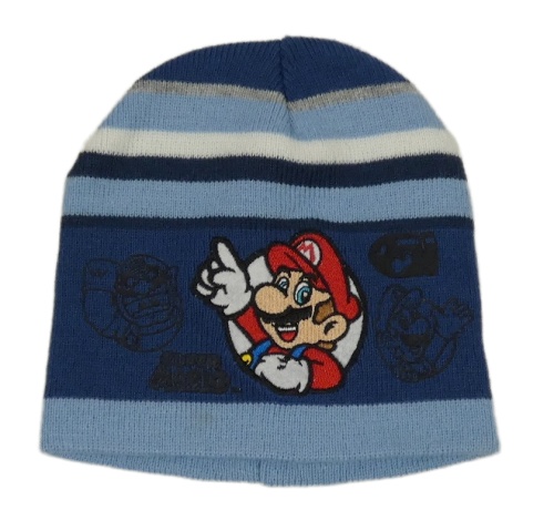 Tmavomodro-modrá pruhovaná pletená čepice s Máriem
