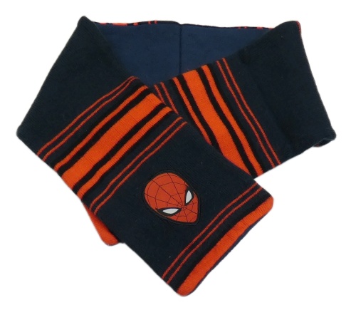 Tmavomodro-červená pruhovaná šála se Spidermanem