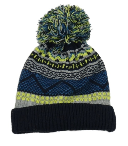 Barevná vzorovaná pletená podšitá čepice s bambulí