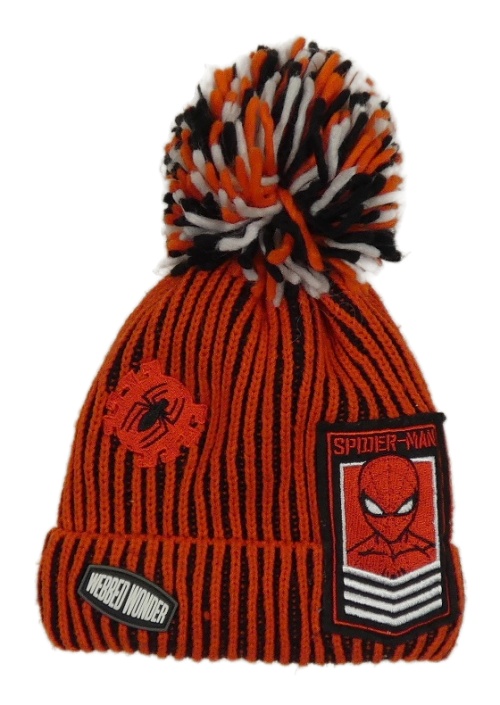 Oranžovo-černá žebrovaná čepice se Spidermanem a bambulí George