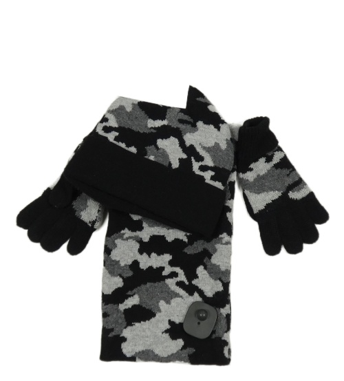 Nové - 3set - Černo-šedá army pletená čepice + nákrčník + rukavice F&F