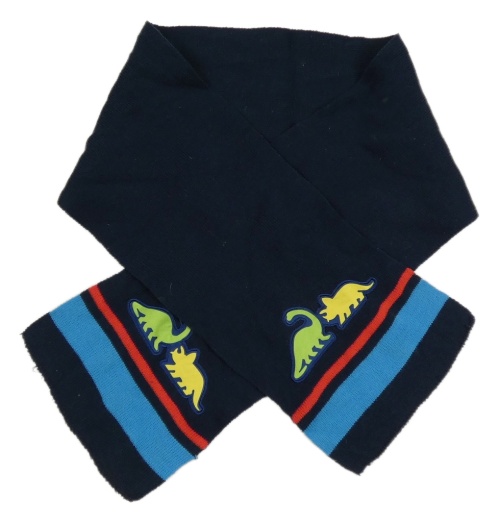 Tmavomodrá pletená šála s modrým pruhem a dinosaury