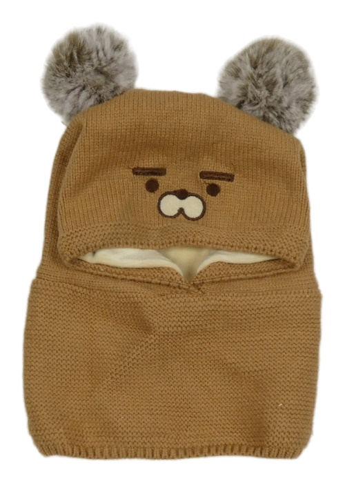 Karamelová pletená podšitá kukla s čumákem a bambulemi