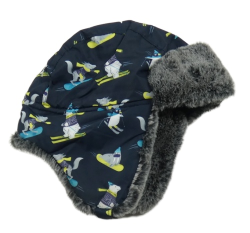 Tmavomodrá šusťáková zateplená beranice s obrázky a kožešinou