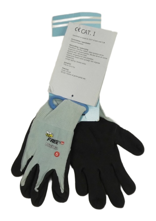 Nové - Světlezeleno-černé pracovní prstové rukavice se včelkou