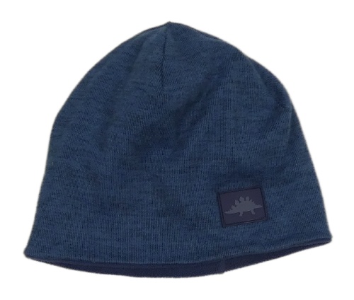 Tmavomodrá melírovaná úpletová podšitá čepice s nášivkou