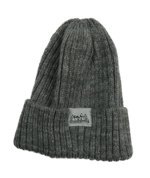 Šedá melírovaná žebrovaná pletená čepice s nášivkou