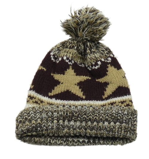 Vínovo-béžová pletená čepice s hvězdami a bambulí