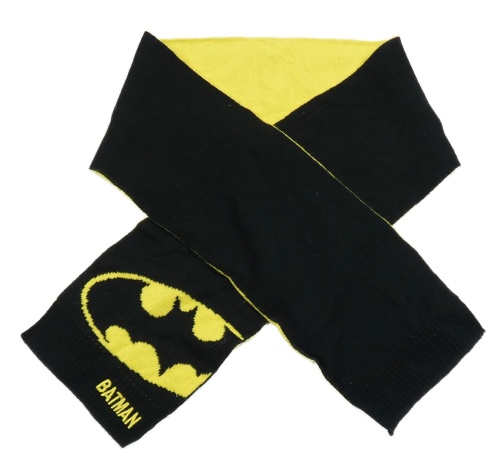 Černo-žlutá pletená šála s Batmanem