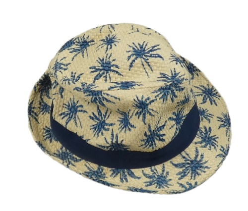 Béžovo-modrý slamák s palmami