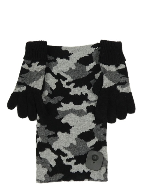Nový - 2Set - Šedo-tmavošedo-černý army pletený nákrčník + prstové rukavice F&F