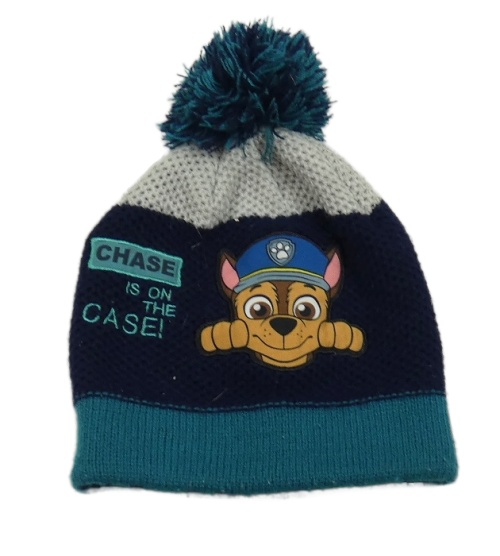 Tmavomodro-zeleno-šedá čepice s bambulí - Tlapková patrola