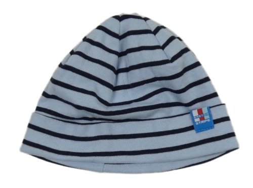 Světlemodrá pruhovaná bavlněná čepice s nášivkou