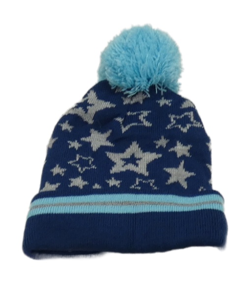 Tmavomodrá pletená podšívka s hvězdičkami a bambulkou