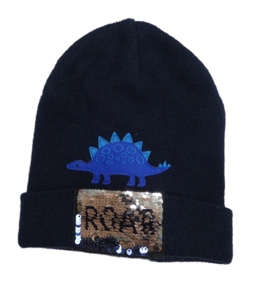 Tmavomodrá pletená čepice s dinosaurem a překlápěcími flitry Topolino