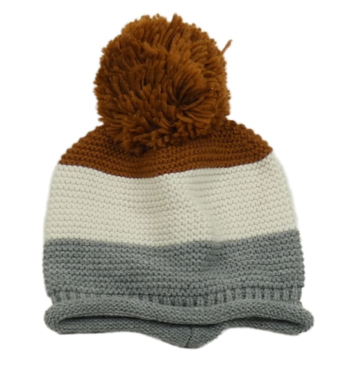 Hnědo-bílo-šedá pletená čepice s bambulí George