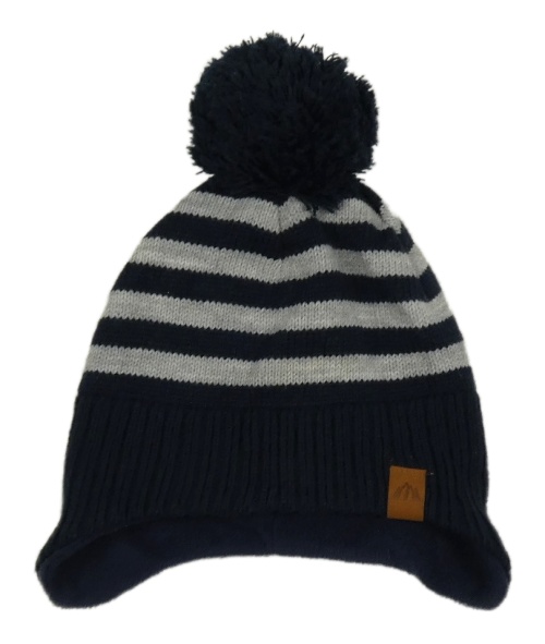 Tmavomodro-šedá pruhovaná pletená čepice s bambulí