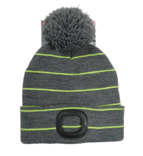 Nové - Šedo-neonová pruhovaná čepice s bambulí