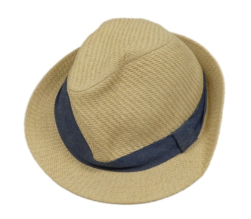 Béžovo-tmavomodrý slaměný klobouk H&M vel. 104-122
