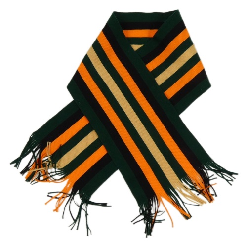 Zeleno-černo-oranžovo-béžová pruhovaná šála s třásněmi
