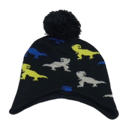 Tmavomodrá pletená čepice dinosaury a bambulí MANOR