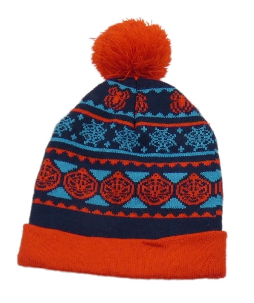 Tmavomodro-červená vzorovaná čepice s pavouky a bambulí Marvel