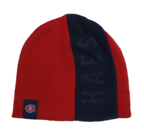 Červeno-tmavomodrá pleteno/fleecová čepice s nápisem