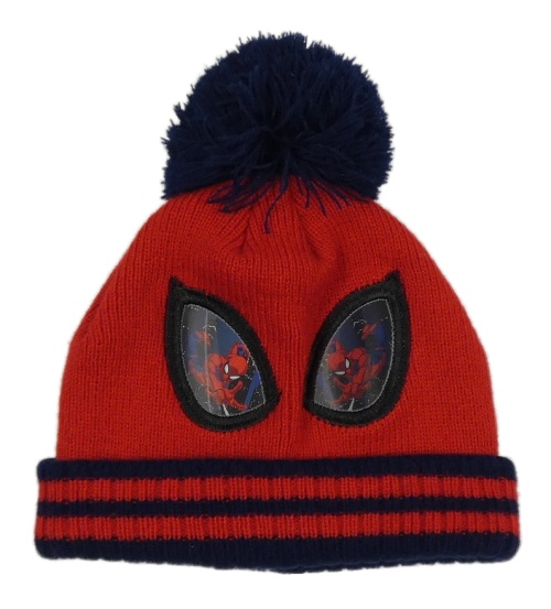 Červeno-tmavomodrá čepice s bambulí - Spiderman Marvel