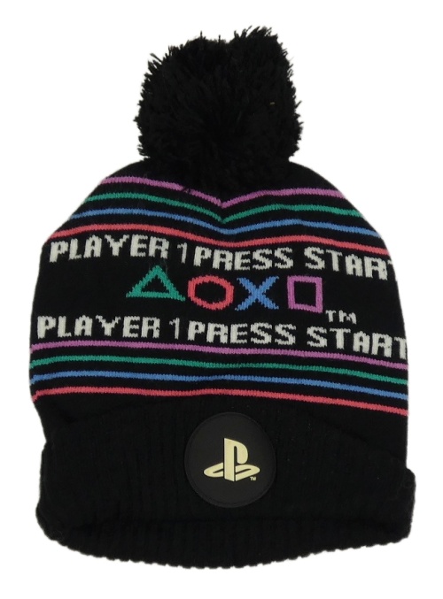 Černo-barevná čepice s pruhy a bambulí - PlayStation