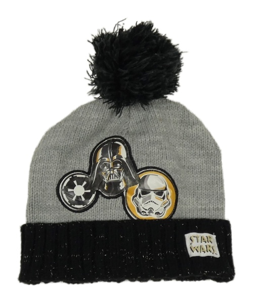 Šedo-černá pletená čepice se StarWars a bambulí Primark