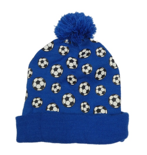 Modrá vzorovaná pletená čepice s míči a bambulí